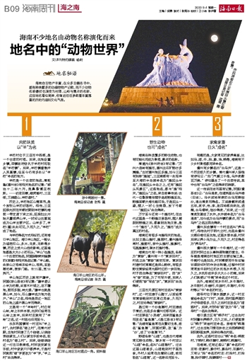 文\本刊特约撰稿 杨树海南自古物产丰富,在众多古籍志书中,都有种类繁多的动植物物产记载,而不少动物名称最终也演变为村落、山岭与景点的名称,这些地名看似简单,但背后往往承载着丰富厚重的历史内涵和文化气息。