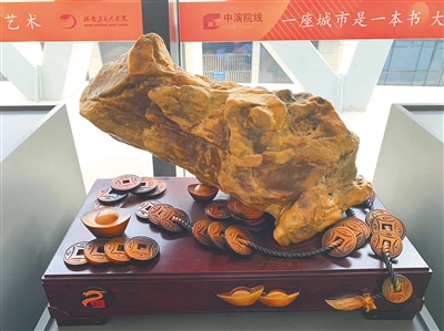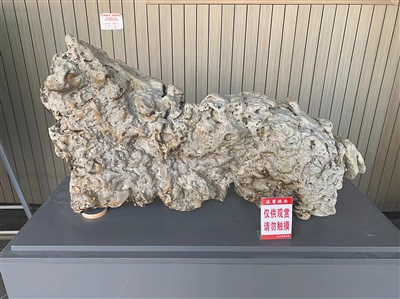 近日,记者走进东方大剧院参观赏石展,看到了一枚重300余斤、外形似狮子的太湖石。这枚奇石,正是文海丰的藏品。