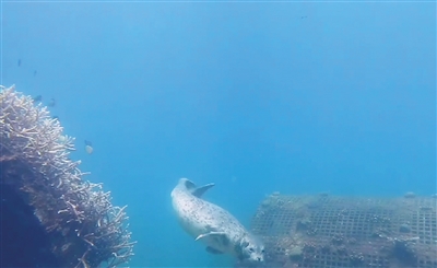 本报三亚9月6日电(记者李艳玫)9月6日,海南日报记者从三亚蜈支洲岛旅游区获悉,工作人员多次拍摄到一只斑海豹在蜈支洲岛附近海域活动。画面显示,斑海豹在蜈支洲岛海域海洋牧场的人工鱼礁间游动。专门研究海洋牧场的海南大学教授王爱民告诉海南日报记者,自己向有关的海豹研究专家、附近海洋公园的海豹饲养专家进行了求证,该海豹确为斑海豹。