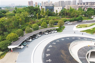 重庆首座光伏充电发用一体充电站。 新华社记者 刘潺 摄