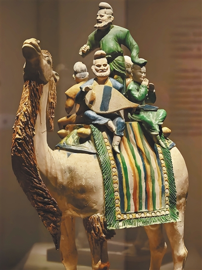 甘肃省博物馆的“镇馆之宝”马踏飞燕不仅出现在了教材中,还成为中国旅游的标识。该文物为东汉时期的青铜器,1969年出土于甘肃武威。这匹奔马三足腾空、一足超越飞鸟的瞬间,飞鸟回首惊顾,更增强奔马急速向前的动势,马全身的着力点集中于超越飞鸟的一足之上,准确反映了力学的平衡原理。整体来看,这件青铜器展现了我国古人卓越的工艺技术水平。