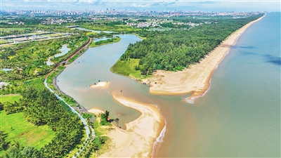 作为海口江东新区起步区最先启动的绿色基础设施项目之一,江东新区对道孟河湿地公园长度约2.1公里的水系开展治理,经过退塘还湿等生态修复工程,恢复了昔日美景。
