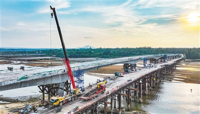 目前,环岛旅游公路项目全体参建单位正紧盯“年底主线路建成通车”这一目标,科学倒排计划,精心组织施工,轮班奋战,高标准推进控制性大桥如期建成。