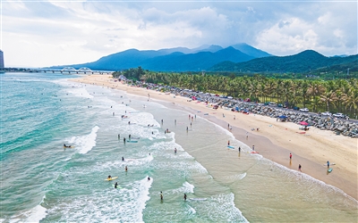 万宁日月湾是中国知名“冲浪胜地”,这里全年都适宜冲浪。近年来,日月湾冲浪运动频频在社交平台上“出圈”,不少游客慕名而来打卡。特约记者 蒙钟德 摄