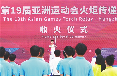 新华社杭州9月20日电 (记者胡佳丽 季嘉东)20日,杭州第19届亚运会火炬传递活动最后一站在杭州举行。传递进入杭州奥体中心的圣火,将在23日的开幕式上点燃主火炬。杭州站的火炬传递共有203棒火炬手参与,路线主题为“锦绣繁华新天堂”。在位于杭州城市阳台的起跑点,第一棒火炬手、羽毛球运动员陈雨菲高擎火炬,昂首阔步开启了全程约11.4公里的接力传递。
