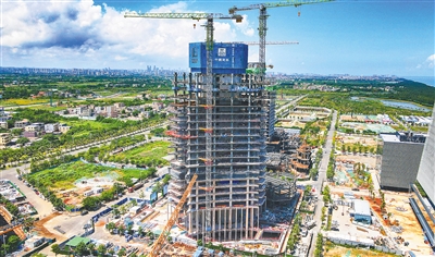 航拍海口江东新区中国石化自贸大厦项目。本报记者 陈元才 摄