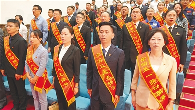 4月28日,海南省五一劳动奖和海南省工人先锋号表彰大会在海口举行,对获得海南省五一劳动奖状、五一劳动奖章的先进集体和先进个人进行表彰。高林 摄