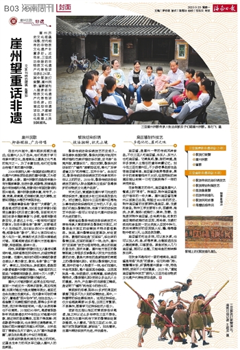 文\本刊特约撰稿 陈雅如崖州历史文化底蕴深厚,世代相传的非物质文化遗产丰富多彩。近年来,三亚成功申报的非物质文化遗产代表性项目多达24项,其中黎族打柴舞、崖州民歌、疍歌被列入国家级非物质文化遗产代表性项目名录。扫描这些非遗项目,大都能在古崖州文化版图上找到其源流。