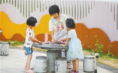 小朋友在海口市骑楼老街中山横路街心公园玩耍。 海南日报记者 李天平 摄