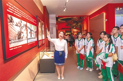 近日,中学生参观红色娘子军纪念园。 本报记者 李天平 摄