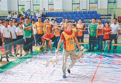趣味运动会现场,农民朋友体验抓鸭子活动。图片均由活动主办方提供