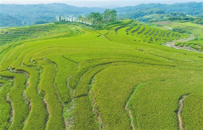 10月15日,航拍绿意盎然的五指山市牙胡梯田。作为五指山市梯田稻作系统农业文化遗产保护区,牙胡梯田面积共4875亩,集日常水稻耕作和旅游观光等功能于一体,近期将迎来最佳观赏季。本报记者 李天平 摄
