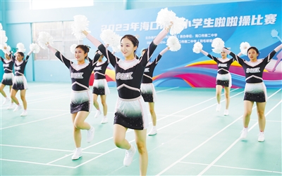 2023年海口市中小学生啦啦操比赛于10月14日在海口市第二中学开幕。来自海口市59所学校的72支参赛队1500名运动员齐聚一堂,展开角逐。这是海口市教育局首次举办市级中小学生啦啦操比赛。