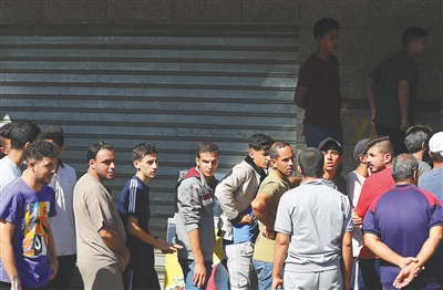 以色列军方13日发表声明,称出于“人道主义”原因,要求加沙地带北部约110万巴勒斯坦民众撤往南部地区。联合国人道主义事务协调厅15日说,以色列要求巴勒斯坦加沙地带北部所有居民向南撤离正导致“大规模流离失所”。图为10月15日,在加沙地带南部地区,流离失所者排队购买大饼。新华社发