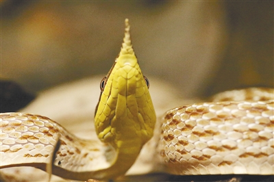 形态特征:吻端尖出,向前方上翘,全身绿色。蛇体长,全长1130~1283毫米,尾亦长。幼体背面呈金黄色,腹面呈淡黄色。海南尖喙蛇与其大陆姐妹种形态上的主要区别是:海南尖喙蛇成体无黑眉(姐妹种有黑眉),有颊鳞2枚(姐妹种有颊鳞1枚)。
