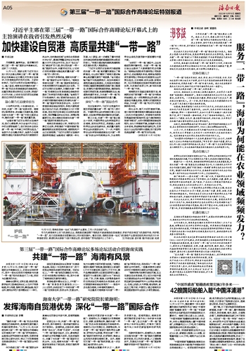 海南如何更好参与共建“一带一路”?梁海明认为,关键是充分发挥海南区位、资源、政策等优势,推动共建“一带一路”和自由贸易港建设的战略联动。海南可以充分发挥区位、资源等优势,与共建“一带一路”国家打造热带农业教育、研究和产业联盟,带动共建“一带一路”国家的育种专家、科研院所、粮食企业和相关资源在海南汇聚。此外,海南可打造“一带一路”物流联盟,进一步加强区域间的深化合作。