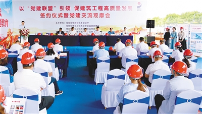 10月20日,由海南省住房和城乡建设厅、海南省建设工程质量安全监督管理局、海口市建设工程质量安全监督站联合发起的党建联盟签约仪式暨党建交流观摩会,在位于海口琼山区的浙建集团浙江三建佳元·江畔濠庭二期项目现场举行。当天,海南省建设工程质量安全监督管理局党支部、海口市质监站第二党支部、中建一局集团第一建筑有限公司海南省美术馆项目党支部、中建五局海南分公司海口市职工活动中心项目党支部、中建五局海南分公司海口市江东新区颐景园项目党支部、中铁建工集团华南有限公司海口区域项目联合党支部(东寨新居一期项目)、中铁建设集团南方工程有限公司第八项目群党支部(海口江东新区瑞祥园、瑞和园项目)、中交一公局集团有限公司海口市江东新区椰青园项目党支部、中交一航局第一工程有限公司海南项目部党支部、浙江三建佳元·江畔濠庭二期项目党支部等10家单位签署“党建联盟”协议,深化党建联创共建,充分发挥基层党组织的战斗堡垒作用和党员先锋模范作用服务重点项目建设,以“红色引擎”破除协同壁垒,整合行业资源,推动工程项目建设提质增效。