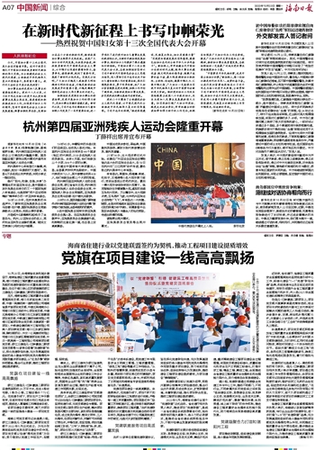 浙江三建佳元·江畔濠庭二期项目党支部积极推行党支部“标准+特色+若干任务”内容体系建设,把党建工作与现场安全文明施工管理、工程质量管理、“绿色工地”建设等重点工作相结合。“从物料的智慧测算,到建筑垃圾的分类与处置,再到助力项目周边的环境维护,项目党支部都积极深入参与,并顺利完成了文明城市和海南省专家组登革热等检查任务。”朱建勇说。