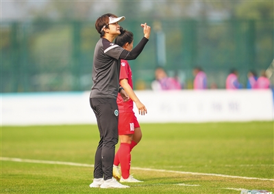 訾晶晶坦言,2023赛季,球队引进了一些外省高水平球员。“不过,我依然很重视本土球员的培养,在平时的训练中特别‘关照’她们,对她们要求更严格。本土球员王雯雯2023赛季第一阶段5场比赛首发踢满90分钟全场,王靖怡和王慧敏都是主力替补,根据对手不同和战术需要安排她俩的上场时间。今年球队全力冲超,在保证成绩的基础上,尽可能多地给年轻的本土球员机会出场亮相。”訾晶晶说。