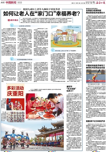 家住北京市东城区、93岁的穆爷爷,因有眼部疾病需要经常去医院看病;他电话预定“养老管家”陪同就医服务后,服务人员到穆爷爷家帮助老人打车、下楼、挂号、取药、打印单据,解决了老人无人陪伴就医的问题。调查显示,我国九成以上老年人倾向于居家养老。如何才能让老人在“家门口”幸福养老?“新华视点”记者近期在北京、湖南、浙江、甘肃等地采访发现,各地探索采取各种措施,创新养老服务模式,取得了显著成效。