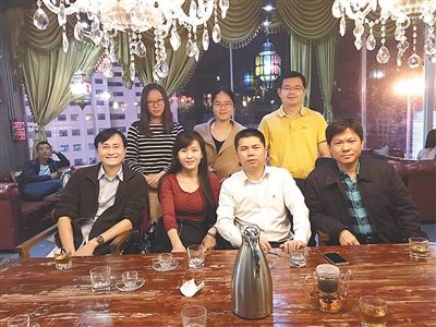 林仕岛(后排右一)和海中同学聚会。 本版图片由海南中学或受访对象提供
