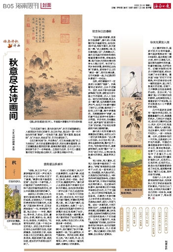 《说文解字》称“秋,禾谷熟也”,可又有典籍记载“秋之为言愁也”,秋天的金黄意味着收获,同时也意味着凋零,秋之斑斓里蕴含着阴阳交替、盛衰转换的道理,这也让秋天比其他季节多了一份神秘感。正是因为这样,古今文人墨客喜欢用文字或绘画记录秋天,让秋意在诗画中升华。