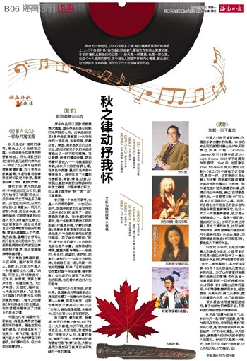文\本刊特约撰稿 王琪棋秋夜的一轮明月,让人心生思乡之情;踩在铺满金黄落叶的道路上,人们不自觉吟咏“自古逢秋悲寂寥”;看到农作物结出累累硕果,丰收的喜悦占据我们的心房……秋天是一种意境,也是一种心境。在这个令人遐思的季节,古今音乐人用音声抒发内心情感,表达他们对世界和人生的思索,创作出了一大批经典音乐作品。