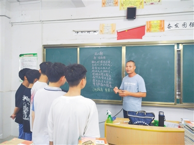 得知儋州话文读音吟诵拟获评第六届省级非遗,朱荣很是兴奋,他抓住这个机会,将儋州话文读音吟诵搬上了儋州市丹阳学校高一(4)班的讲台。