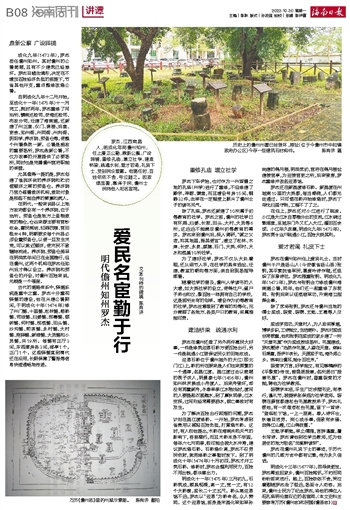 文\本刊特约撰稿 陈有济罗杰,江西南昌人,明成化年间儋州知州,任上廉正公勤,鼎新公廨,广设驿铺,重修孔庙,增立社学,建造桥梁,疏通水利,爱才若渴,礼贤下士,受到民众爱戴。他离任时,百姓依依不舍,号泣随之。因政绩显著,惠泽于民,儋州士民将他入祀名宦祠。
