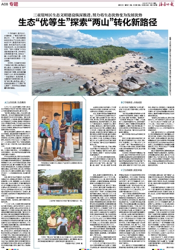 “‘十三五’以来,三亚崖州湾科技城的建设为崖州发展注入前所未有的动力,全区正迎来新经济、新模式、新业态的系列变革,区城融合的人才支撑、科技溢出等为崖州打造绿色高质量发展典范提供保障。”崖州区区长童立艳说,崖州是我国重要的南繁育种核心区,也是我省海岸带及近岸海域生物多样性保护优先区的重要组成部分,丰富多样的生态资源是该区实现绿色发展的最大优势,推进崖州区生态价值向经济价值的转化,不仅可以赋能区域高质量发展,也能有效推动海南建设国家生态文明试验区。