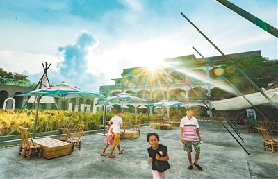 近几年,海南民宿产业发展方兴未艾,老屋被改造成民宿的例子还有很多。琼中黎族苗族自治县红毛镇原新伟农场片区,有一个叫“山有·食茶饭稻”的民宿。该民宿的客房和休闲娱乐场所是用原农场的招待所、礼堂等老建筑改造而成的。和其他村民办的民宿不同,这个民宿配套十分丰富。民宿客房与餐厅之间有一大片稻田,游客可以体验农事。