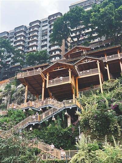山城巷在渝中区,它依山而建、沿崖而上,2万平方米的屋舍挤挤挨挨攀爬在半壁山崖之上,看似岌岌可危,却分外牢固,自成一处景观。长居在平原地区的人来到这,倏忽间就对这奇妙的景观生起敬畏。