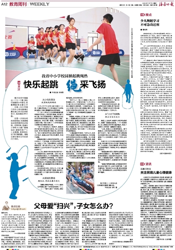 操场上,加油声、呐喊声、欢笑声此起彼伏。随着一道道弧线起落、一个个身影跃起,加入跳绳运动的学生越来越多,构成了海南中小学校园一道靓丽的风景线。