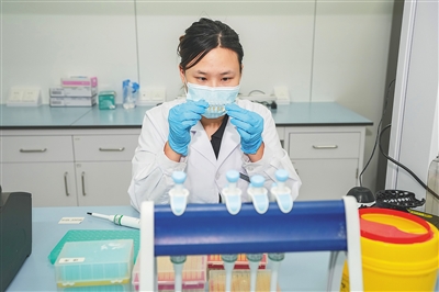 崖州湾分子检测鉴定中心的工作人员在做试验。