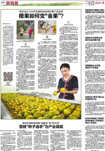 这两年,海垦龙江和白沙垦地共同打造白沙红橙品牌。