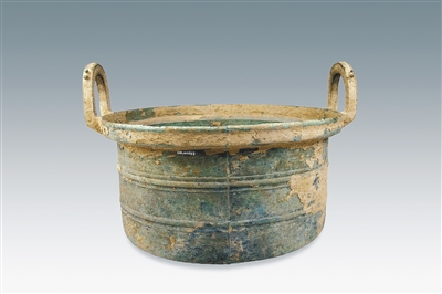 汉代弦纹双耳铜釜是海南省博物馆收藏的另一件珍品。此釜应为汉朝军队平定海南时遗留的炊具,是汉代中央政权经略海南的重要物证。