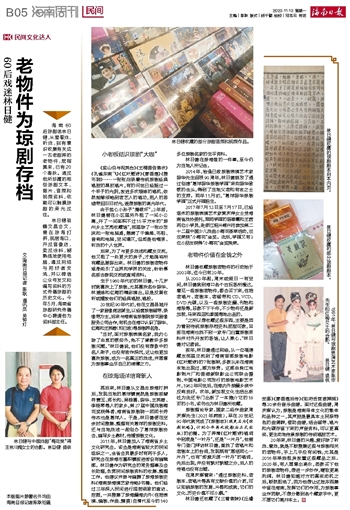 文\海南日报记者 陈耿 通讯员 吴钟灯海南60后琼剧迷林日健,从爱看戏、听戏,到有意识收集有关这一古老剧种的老物件,屈指算来,已有20个春秋。透过他所珍藏的那些琼剧文本、图片、音频和视频资料,依稀可以触摸琼剧的荣光过往。