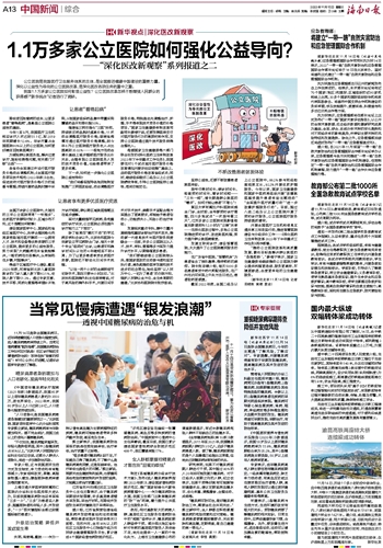 公立医院是我国医疗卫生服务体系的主体,是全面推进健康中国建设的重要力量。深化以公益性为导向的公立医院改革,是深化医改各项任务的重中之重。我国1.1万多家公立医院如何彰显公益性?公立医院改革怎样不断增强人民群众的获得感?“新华视点”记者进行了调研。