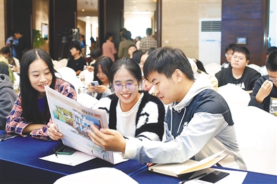 11月19日,“中国式现代化的文化形态视域下丘濬研究”研讨会会议间歇,与会人员阅读海南日报推出的特刊《一代通儒出奇甸——连环画·话丘濬》。本报记者 韦茂金 摄