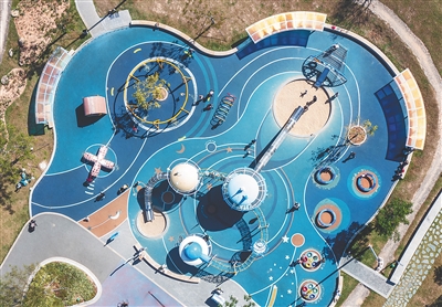 11月17日,家长带着儿童在深圳北站中心公园的星球主题乐园玩耍(无人机照片)。八年前,深圳在全国率先提出系统性建设儿童友好城市目标,倡导实施儿童优先发展战略,探索具有中国特色的儿童友好城市建设路径,各种从儿童角度出发的设施、措施纷纷在这里落地。据统计,截至2023年10月,深圳已建成市级各类儿童友好基地452个,各类公园1260多座,逐步增加完善儿童活动空间及自然教育等设施场所,各级各类儿童议事组织580个,社区儿童之家761个,建成母婴室1270多间,基本实现公共场所全覆盖,创新推广移动母婴室,让儿童出行更为便利。