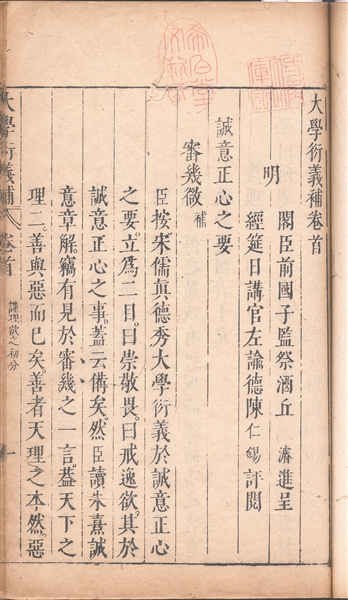 丘濬为何要写《大学衍义补》?我们来看看丘濬怎么说。他在该书的序文和进书奏本中提及的原因有三:一是明代成化年间他充当经筵讲官,“亲睹儒臣以真氏之书进讲”,真氏之书即南宋理学家真德秀创作的政治哲学类著作《大学衍义》,该书共43卷;又见“宫臣之执经者日以是书进焉”,于是得知真氏之《大学衍义》是皇帝和太子的必修教材,“于是时,盖已有志于是”,立志要对该书进行补充。二是有感于真氏之书“有格物致知之要,诚意正心之要,修身之要,齐家之要,而于治国平天下之要阙焉”,故有志于“补其阙略以为治国平天下之要”,使其体用兼备,“以成夫全体大用之极功”。三是希望通过编撰此书,使平生所学见于世用,“以裨助圣政之万一”。