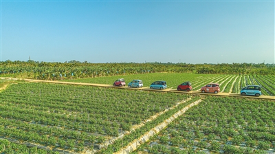 在琼海市塔洋镇,村民开着电动小汽车在田野间兜风。(资料图)