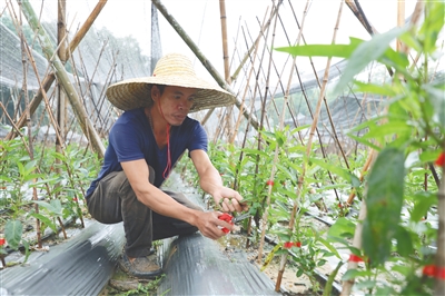 黎母山镇高利埇村村民黄汉光正在修剪人参果苗。 光平 供图
