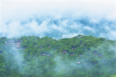 三亚亚龙湾热带天堂森林公园晨雾缭绕的美景。海南日报记者 武威 摄