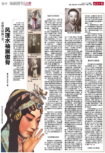 ■ 海南日报记者 杨道1913年,19岁的梅兰芳第一次在上海登台,誉满申城,一代京剧大师就此开启艺术生涯的新旅程。时隔110年,2023年11月20日,“梅绽东方——梅兰芳在上海”特展在上海市历史博物馆正式揭幕,聚焦梅兰芳的艺术人生及其与上海这座国际都会难分难解的渊源。此次展览汇聚了京沪两地与上海及梅兰芳有关的展品共计191件(组),以梅兰芳来上海为重要起点,将他一生重要历史节点作为脉络,展现梅兰芳与上海这座城市互为影响的多重关系,呈现梅兰芳传奇一生。