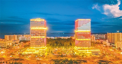 8. 11月上旬,位于儋州洋浦东部生活区新英湾大道,新落成的洋浦国际航运大厦气势恢宏,现代感极强。本报记者 陈元才 摄