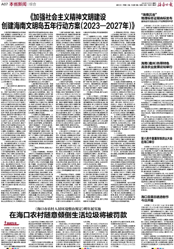 同时,海口各区人民政府应当科学确定农村生活污水治理模式。毗邻城镇及污水处理厂的村庄,应当优先建设污水收集管网;远离城镇及污水处理厂、人口密集且不具备资源化利用条件的村庄,可以建设集中式污水处理设施;居住分散、地形条件复杂、人口较少的村庄,可以因地制宜对生活污水进行分散处理和资源化利用。采取综合性、系统性措施治理农村黑臭水体,支持村委会对排灌系统进行生态化改造,鼓励村民合理利用菜园、果园、花园就地消纳生活污水。
