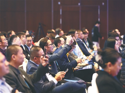 在海南自贸港全球招商推介会现场,嘉宾拿出手机拍照记录。