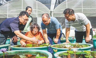 但黄素荣从未缺席。“给睡莲授粉,精细程度好似在做手术!”她说,只有自己亲自做,才知道授粉情况如何,才能放心。这种干一小时就能让人累到“躺平”的活,每年她要连续干上五六个月。