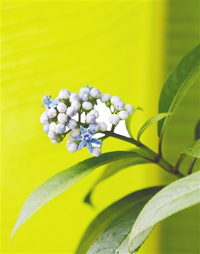美花兰称得上是海南兰花界的“颜值担当”,它花形舒展,每朵宽6厘米到7厘米,花色以白色为底色,渐变至粉色、紫色,常生长在海拔较高的悬崖峭壁上,亭亭玉立,十分漂亮。因花大、色美,美花兰还是现代兰属重要的杂交亲本,育种价值很高。花如其名,海南蝴蝶兰花色清丽,其萼片、花瓣等排列有序,远观如一只只翩翩飞舞的蝴蝶;海南鹤顶兰的花瓣为倒卵状披针形,先端渐尖并呈钩状,有点像白鹤的头部;兰科玉凤花属植物橙黄玉凤花的唇瓣呈橙红色或黄色,形似飞机,也像飞行中的大鸟,因而得“玉凤”之名。此外,夹竹桃科的狗牙花属植物,因花瓣边缘不规则、不平整,状若狗牙而得名;蒟蒻薯科的箭根薯的花朵,因长长的细丝状小苞片从花序上垂落,与老虎的胡须“撞脸”,被人称为“老虎须”。